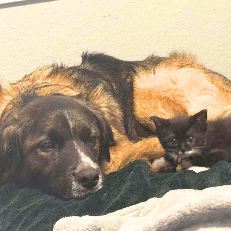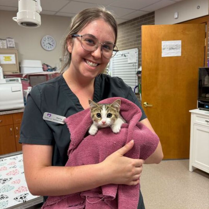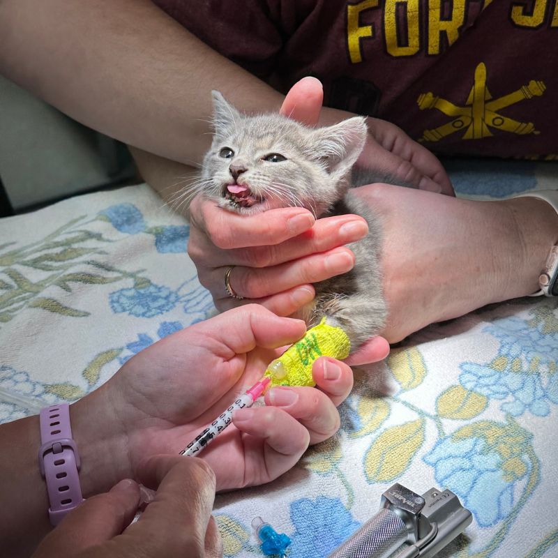 Freya came to Linganore Veterinary Clinic under heartbreaking circumstances, rescued by one of their veterinary assistants after suffering a severe jaw degloving injury. At just a few weeks old, Freya had already faced more than most kittens ever should. Thanks to the skilled hands of Dr. Milza, Freya underwent surgery to reattach the skin to her jaw. With expert care and a lot of love, she’s now on the road to recovery. One of their amazing clients stepped up to foster her, giving her that best friend energy and continuing her care at their home. Freya is already thriving! She’s gaining weight, adjusting beautifully, and being thoroughly spoiled, just as every kitten should be.