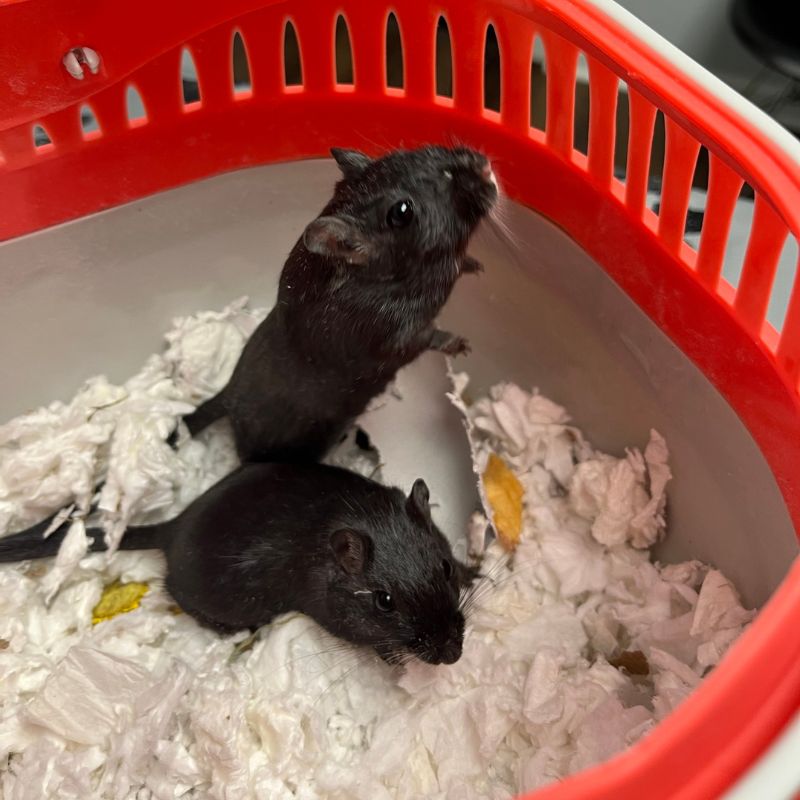 Another adorable duo that rolled into one of our hospitals? A pair of loving gerbils who came to see Dr. Tyler! Their mom, Kaitlyn, couldn’t have said it better: “Dr. Tyler was the best with our gerbils!” Whether it’s big dogs, tiny paws, or anything in between, Maple Hills Veterinary Hospital is always honored to care for best friends of all shapes and sizes. These little buddies remind us that friendship, and great care, comes in all forms.