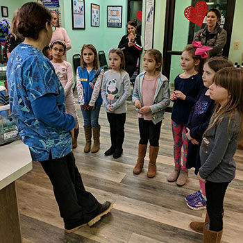 Meadowlands Veterinary Hospital hosted the Girl Scout Daisies of Canonsburg and helped them earn their Care for Animals badge. |