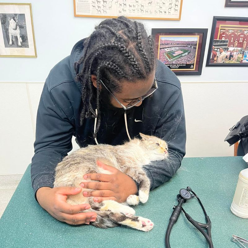 At West Trenton Animal Hospital, Luna loves snuggling with Ajani, who is affectionately called the resident "animal whisperer." Cheryl, his mom said "That's my baby. She apparently loves you guys more than me." Ajani and the whole team at West Trenton Animal Hospital celebrate each member's unique strengths, like his special bond with animals. The team is dedicated to their patients and always strives to make each other smile. They also enjoy recognizing milestones, such as when Dr. K, our Chief of Staff, filled out his own "first visit" board, complete with his favorite things: pigeons, football, and his beloved laser machine!
