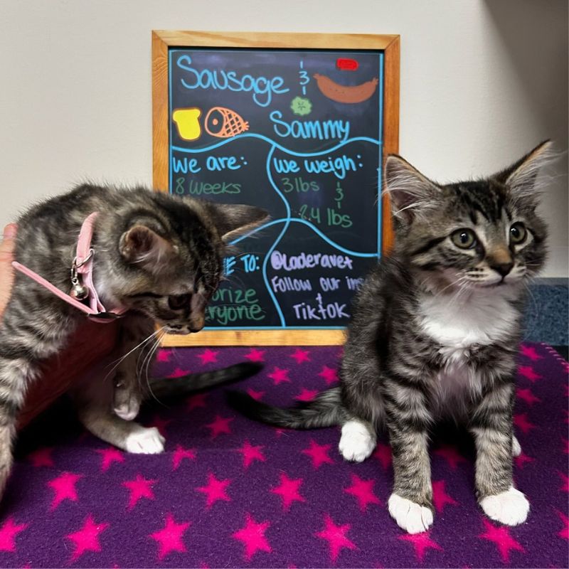 Sammy and Sausage had lots of snuggles (and a few first-visit jitters!) at Ladera Ranch Animal Hospital. These two kittens have a delightful backstory: their mom adopted them expecting a brother and sister dynamic duo, but life threw in a fun twist. A discovery during their checkup revealed they were actually Sammy and Sausage—two adorable sisters!