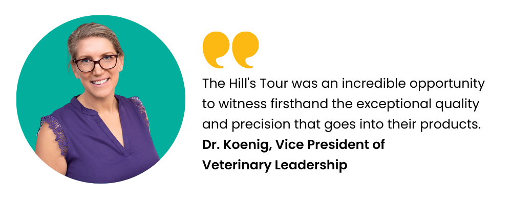 Dr. Koenig, one of our veterinary leaders, offered this takeaway from the Hill’s tour that speaks to the passion behind pet nutrition: