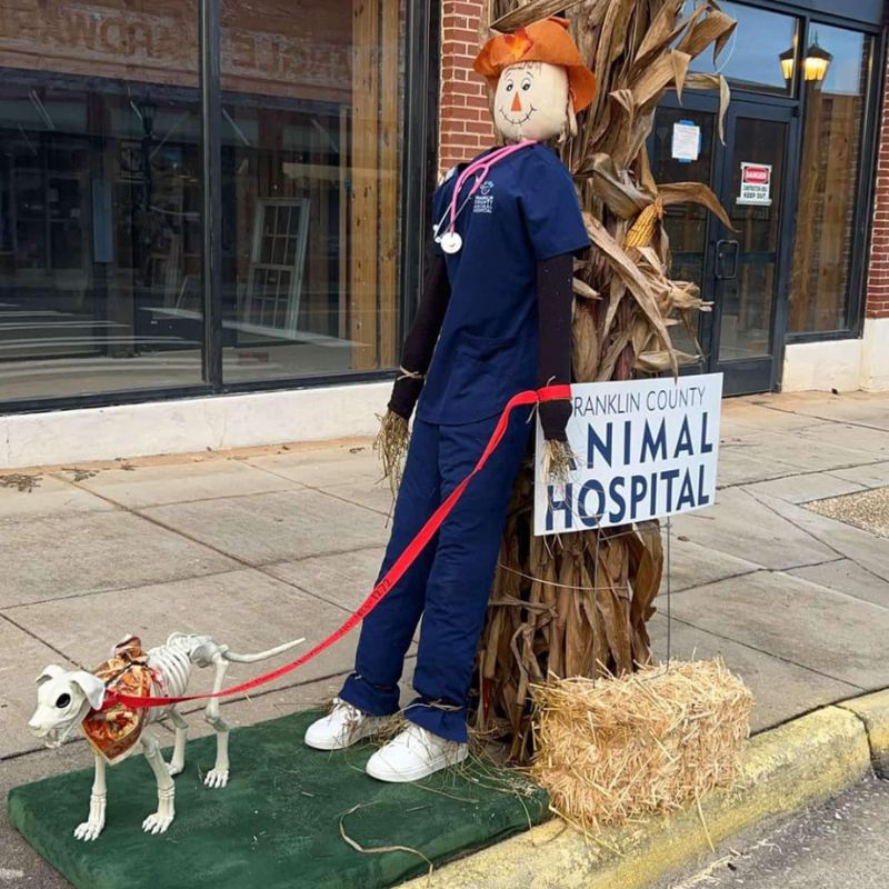 The team at Franklin County Animal Hospital took part in the The Scarecrow Trail this year. This event was hosted by the Community Partnership for Revitalization in Rocky Mount Franklin County, a non-profit focused on preserving local history and creating fun community events. The hospital's veterinarian scarecrow is complete with a stethoscope and spooky skeleton pup. The team hopes to win but is mostly proud to be a part of such a cherished local event.