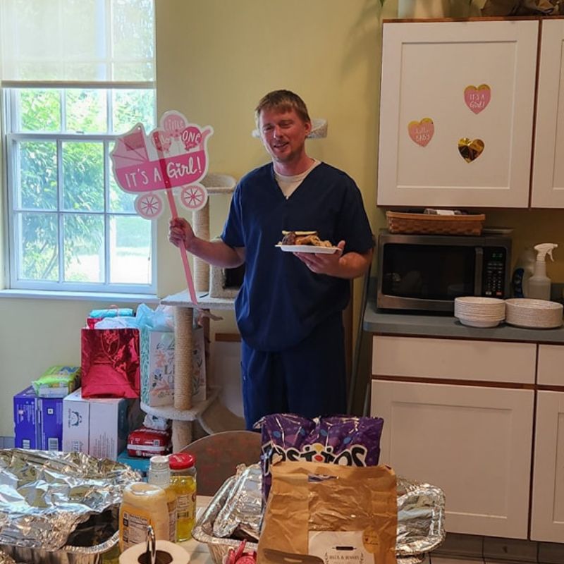 So many of our teams consider themselves family. At Animal Care Center at Cherry Way they did all they could to help Dr. Clouse and his wife prepare for their baby girl expected next month. Getting together to throw him a diaper party was both a fun and helpful way to support Dr. Clouse’s growing family.