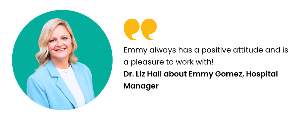 Liz Hall from the OPS team wants to recognize Emmy Gomez, Hospital Manager at Somerset Animal Hospital: "Emmy is fairly new to the role, but is doing great! She's a quick learner and eager to help. She's done a lot to support her COS (who is the sole DVM at her practice), which has allowed her to focus more on her patients. Emmy always has a positive attitude and is a pleasure to work with! Great work Emmy!"