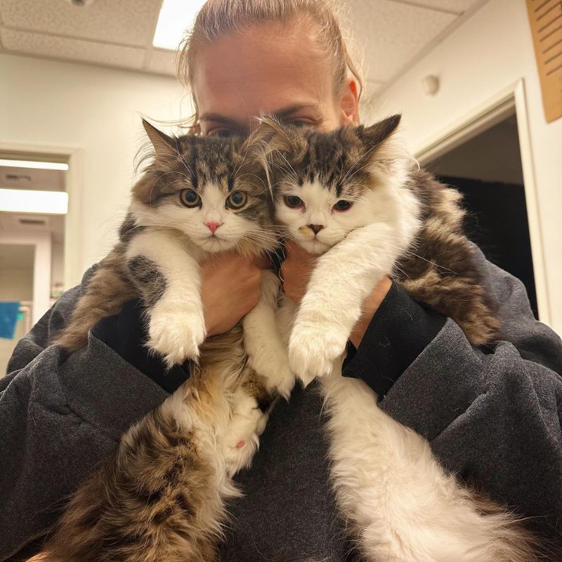 This cat sibling duo thinks they are twins and no one is going to tell them otherwise. They came in for a check-up up and Veronica, otherwise known as the #1 cat lover at Columbia City Veterinary Hospital, couldn’t get enough. Her team members could tell she was in heaven with all this fur to love.