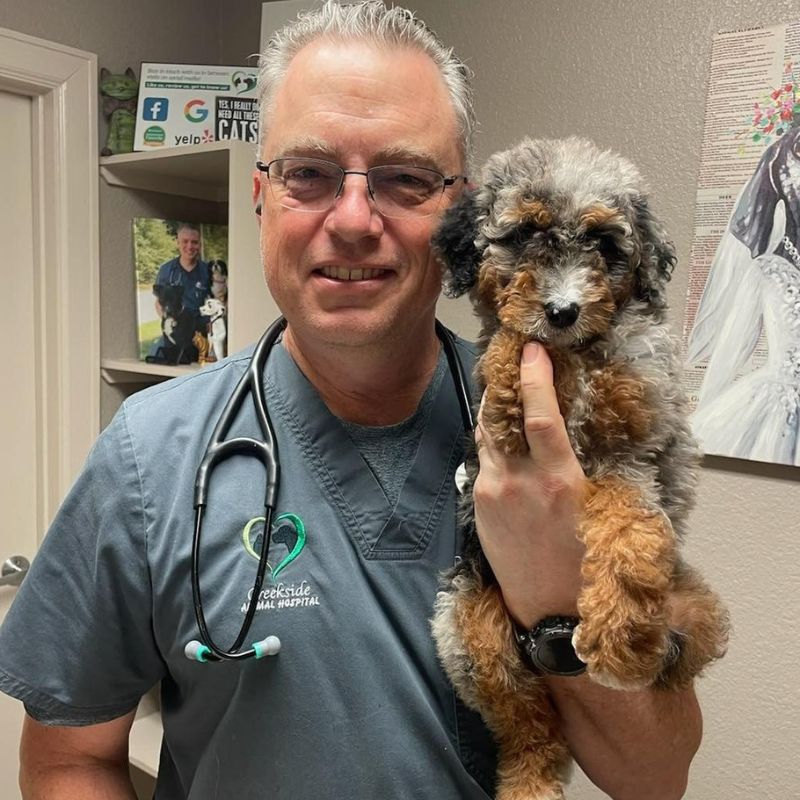 For our hospital teams, it is a compliment if they are told they share a trait with their loveable patients. In this case, it was pointed out that both Figgy and Dr. Robinson proudly sport salt and pepper coloring on their crowns. The team at Creekside Animal Hospital politely asked their clients who wore it better. The diplomatic answer is, of course, both!