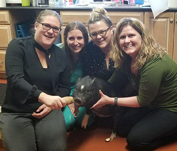 Our IT department is a group of hard-working ladies, who also love the perks of working at a vet hospital! Here they are making time to play with "Luna" during a software conversion at Cedar Brook Animal Hospital in Sicklerville, NJ. |