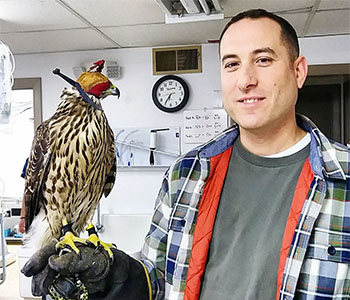 No two days are the same at our practices! This beautiful goshawk visited Littleton Animal Hospital in Littleon, MA with his falconer Arthur recently for a check-up. |
